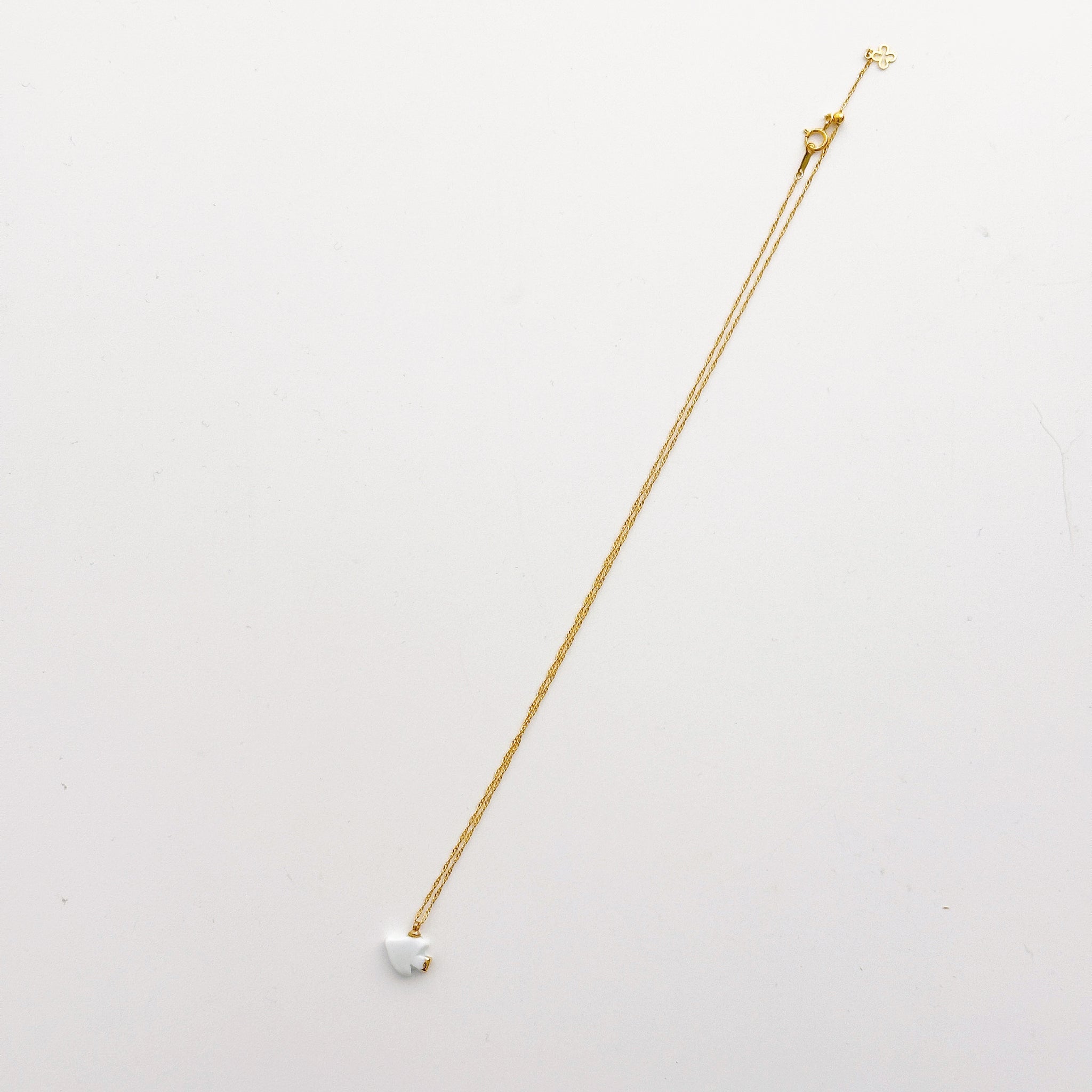有田焼の窯元、清六窯から誕生したアクセサリーブランド、6.kiln(ロクキルン)の、繊細な輝きを放つ「とりさんロングネックレス」です。