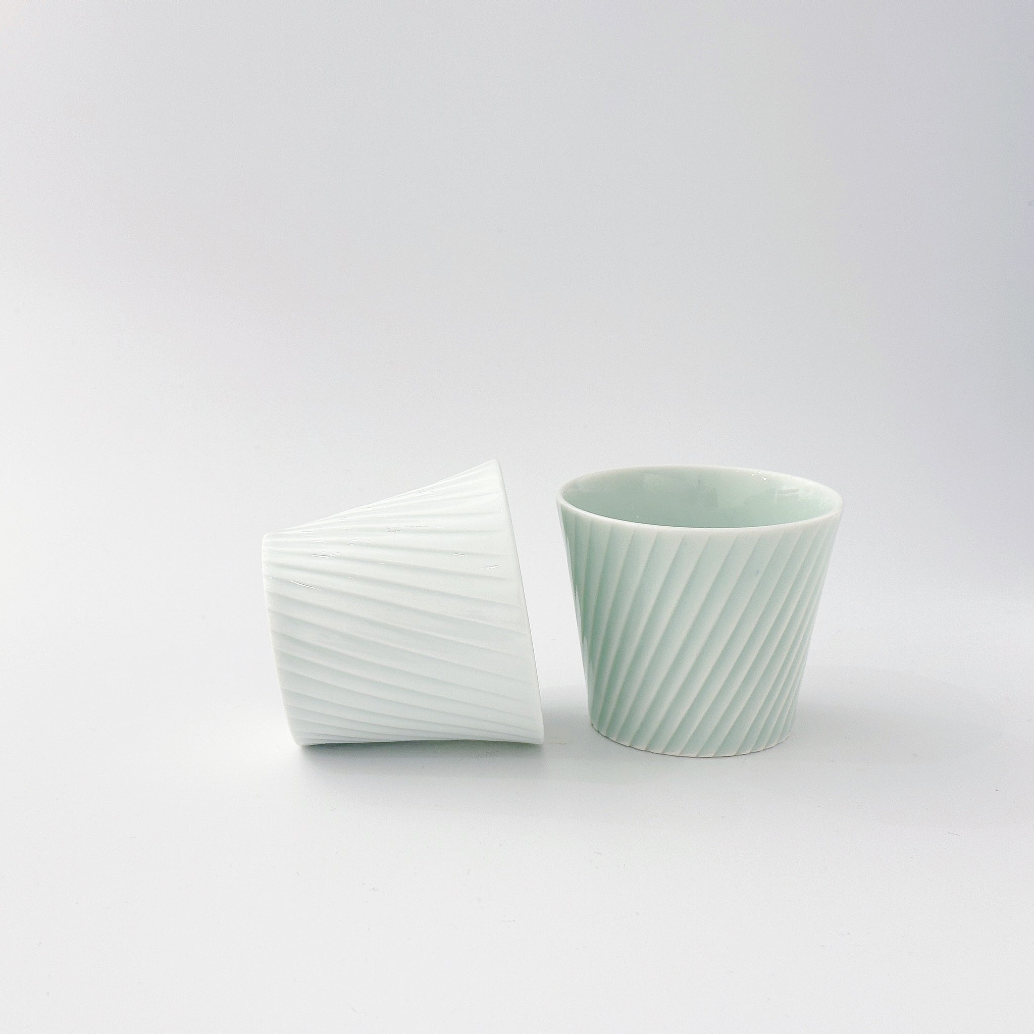 製品名: 中尾純 白磁・青白磁 線彫 蕎麦猪口(斜め) ペアセット(2個組)
